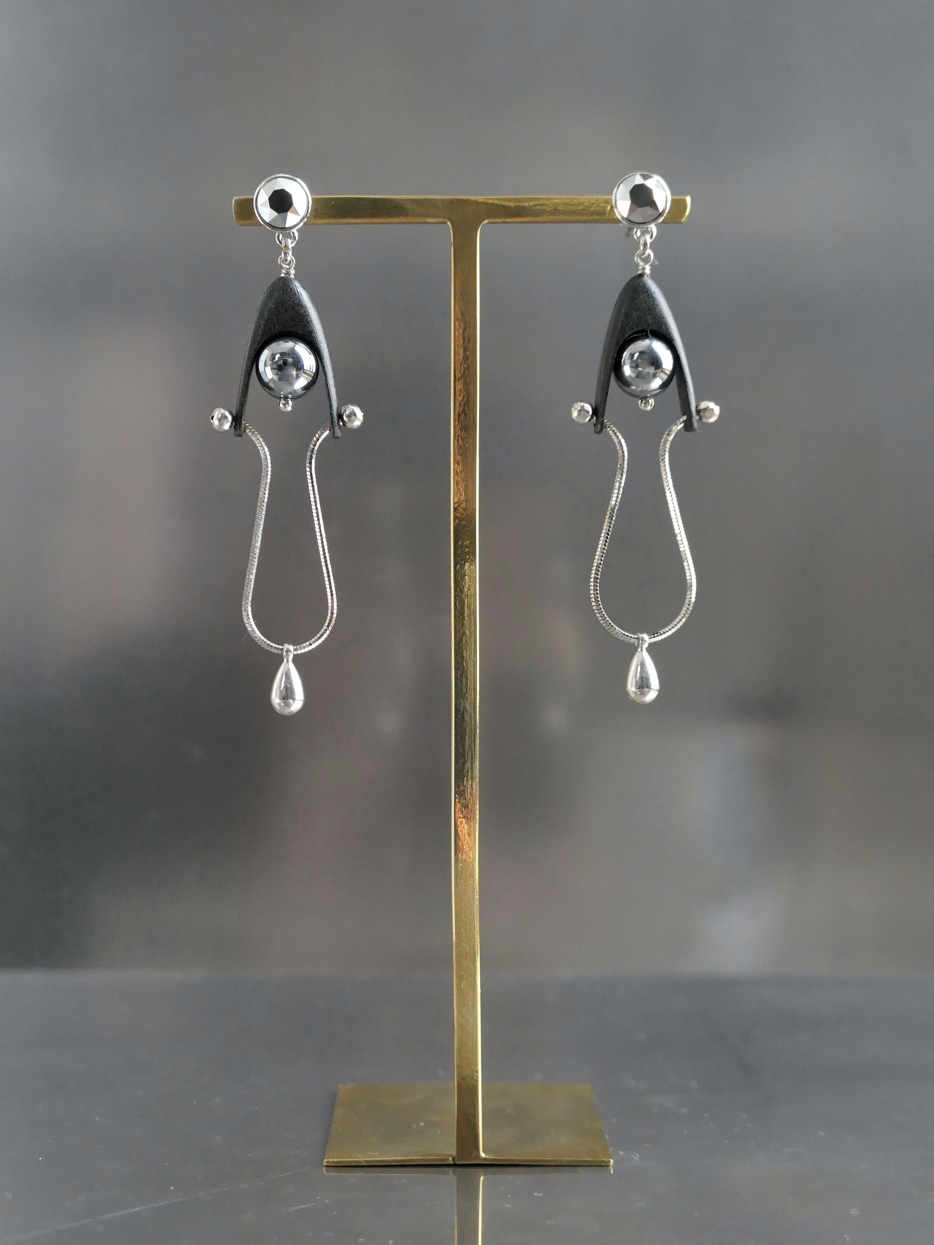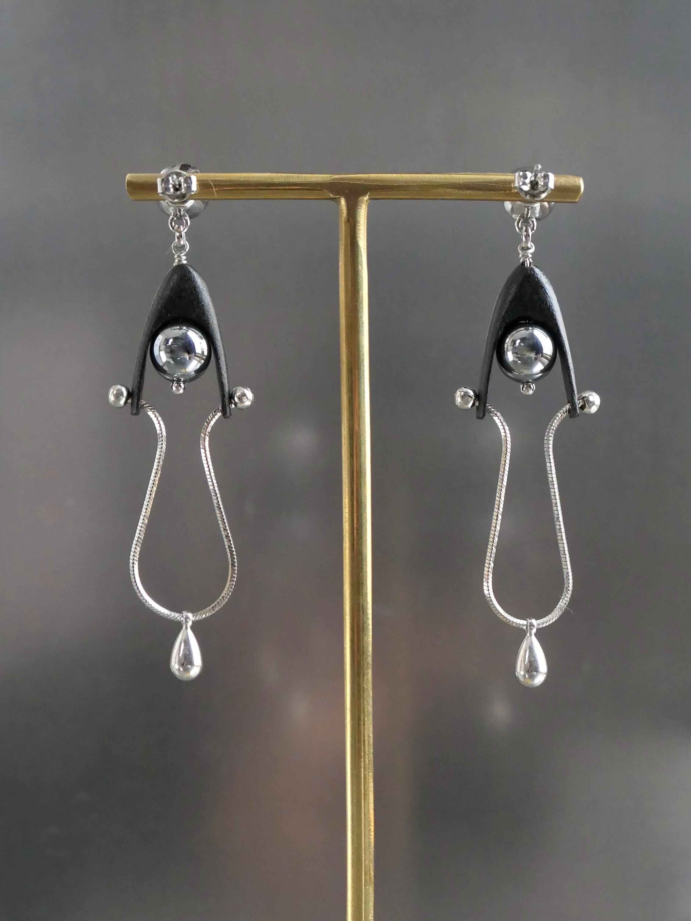 素材:木(アフリカンブラックウッド)、硝子(SWAROVSKI社製のクリスタル)、天然石(テラヘルツ)、真鍮、ステンレス(ピアスポスト)