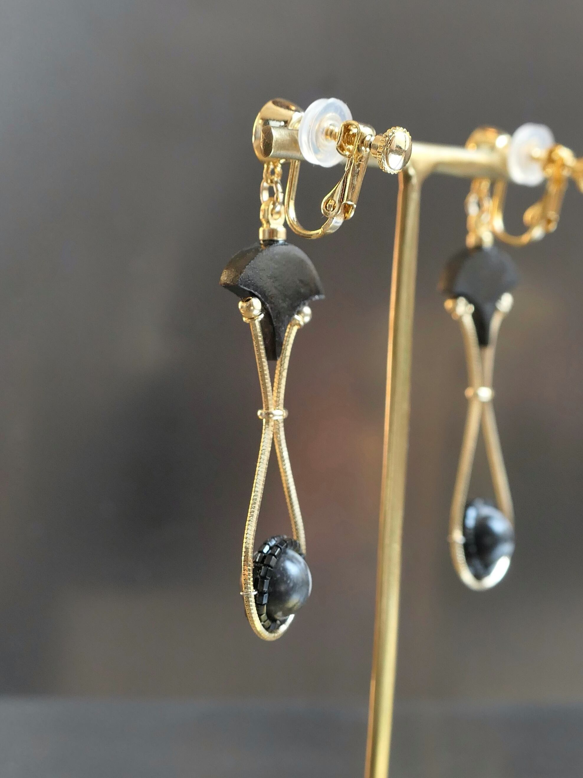 イヤリングはゴムカバーをつけていただくと、痛みを防ぎ、耳から滑り落ちにくくなります(発送の際におつけします)。