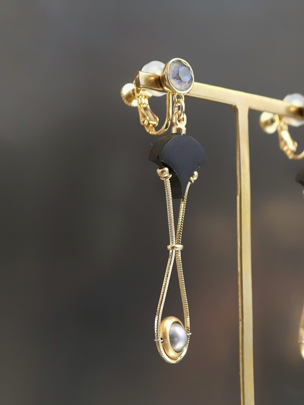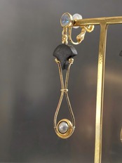 木や天然石、硝子を組み合わせたイヤーアクセサリーです。