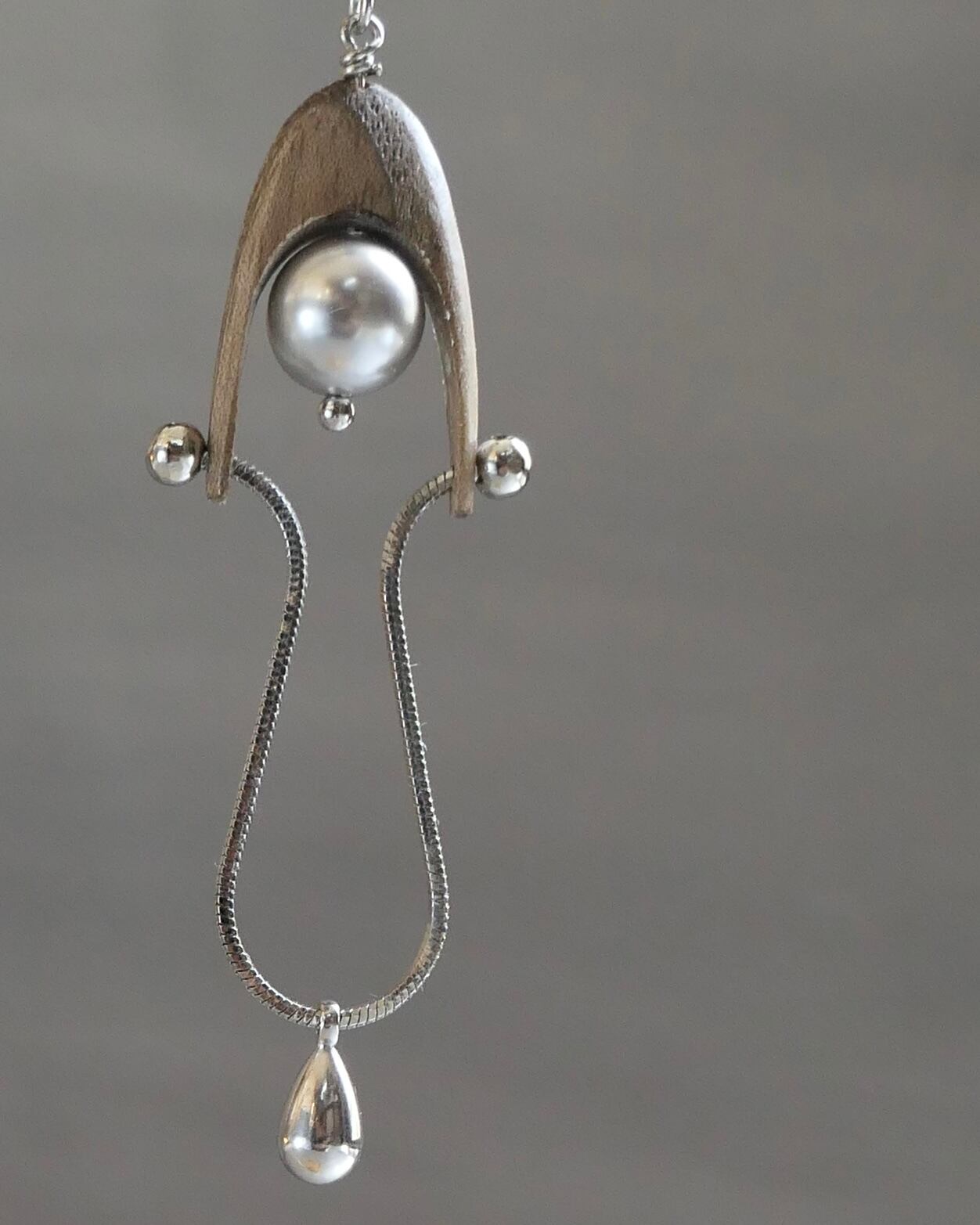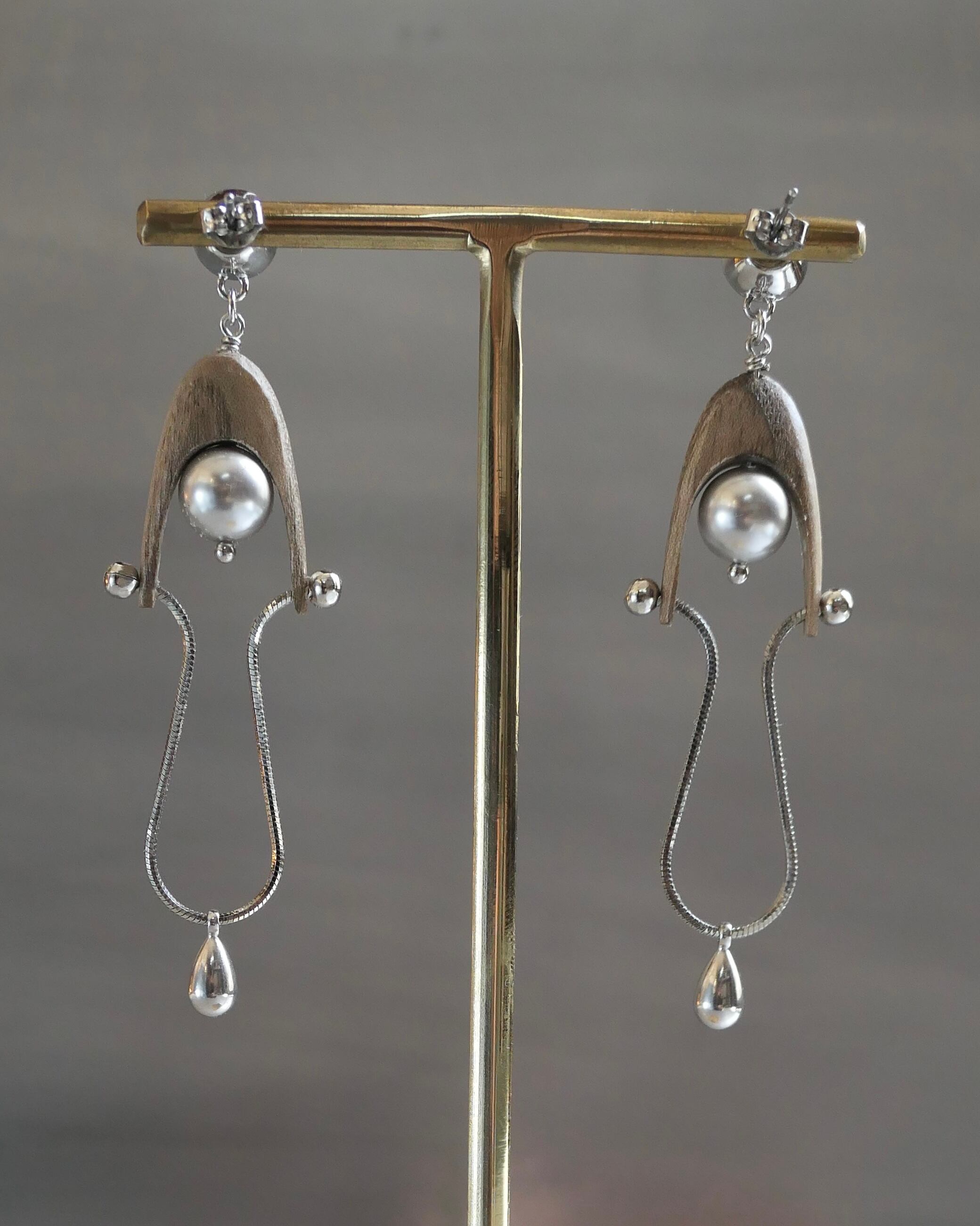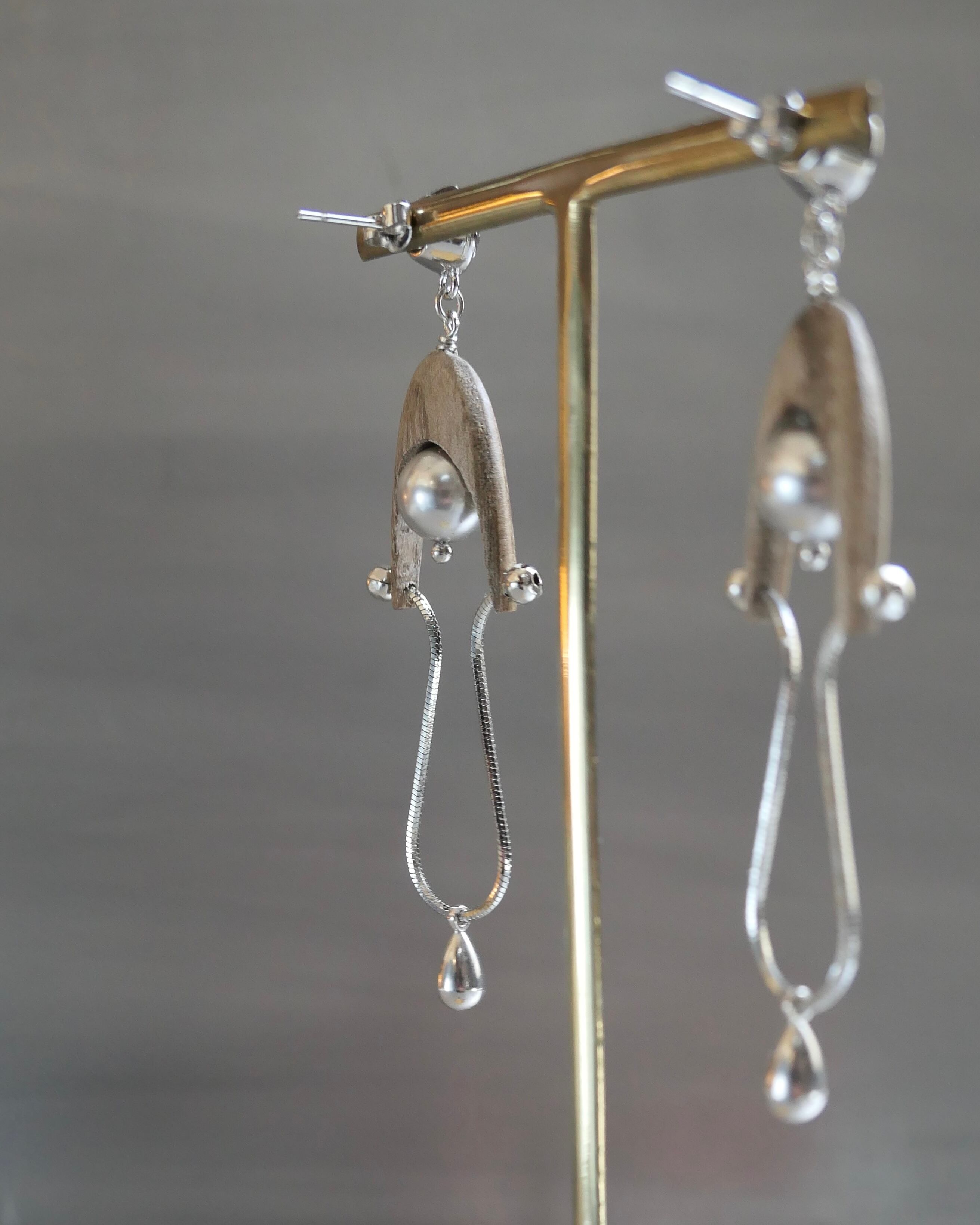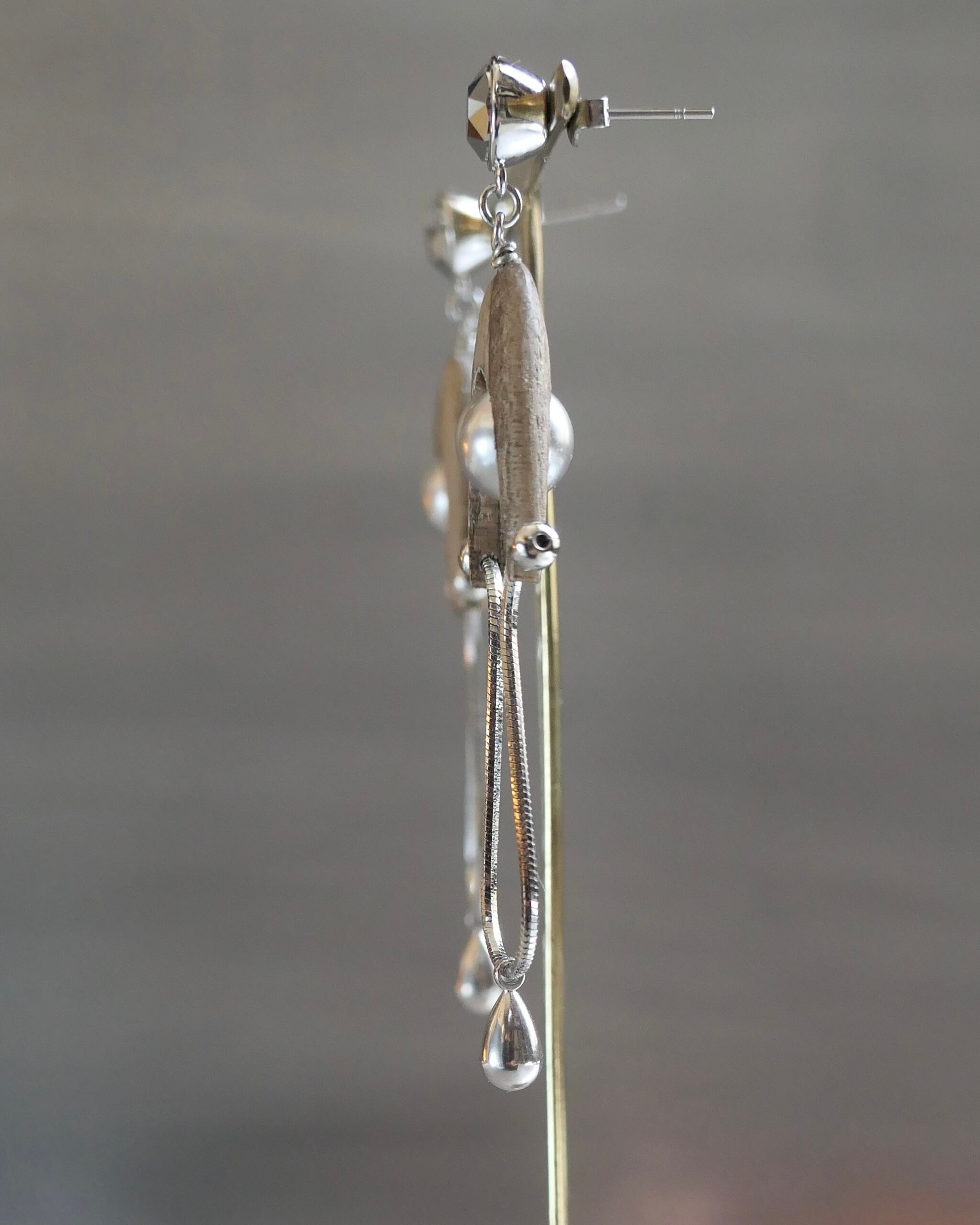 素材:木(神代タモ)、硝子(SWAROVSKI社製のクリスタル、パール)、真鍮、ステンレス(ピアスポスト)