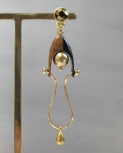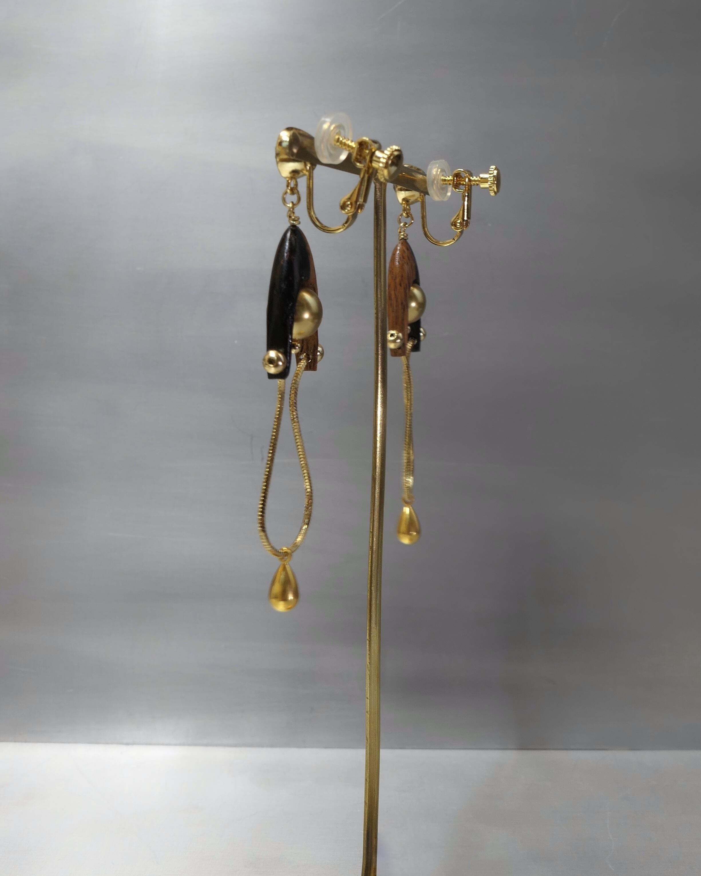 木のアーチから伸びるチェーンのピアスです。とても軽く、何も付けていない様な付け心地です。