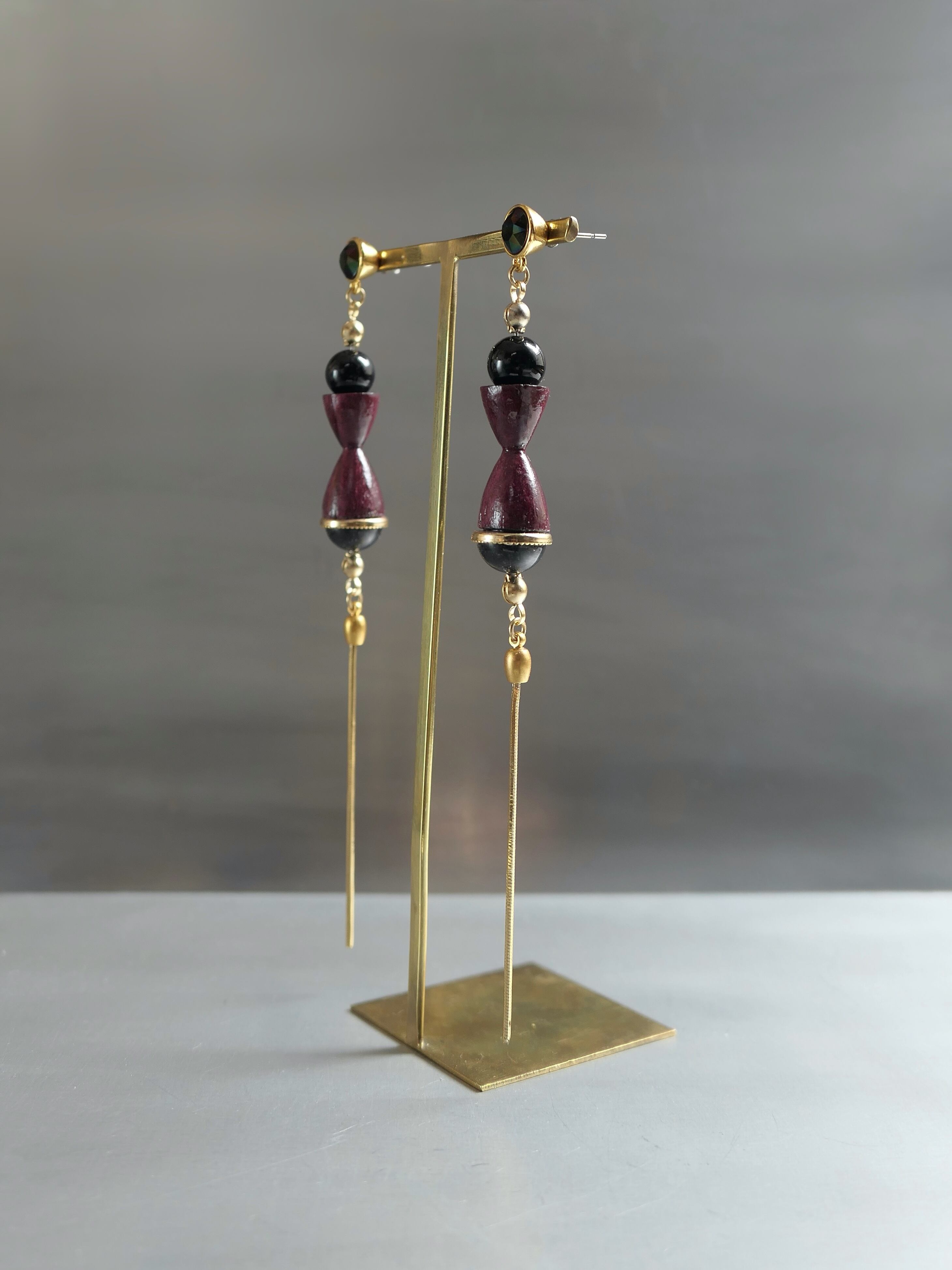 素材:木(パープルハート)、硝子、樹脂、天然石(オニキス、磁鉄鉱砂)、真鍮