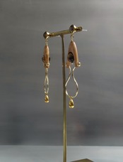 素材:木(メープルウッド)、硝子(SWAROVSKI社製のクリスタル、パール)、天然石(タイガーアイ)、真鍮、ステンレス(ピアスポスト)
