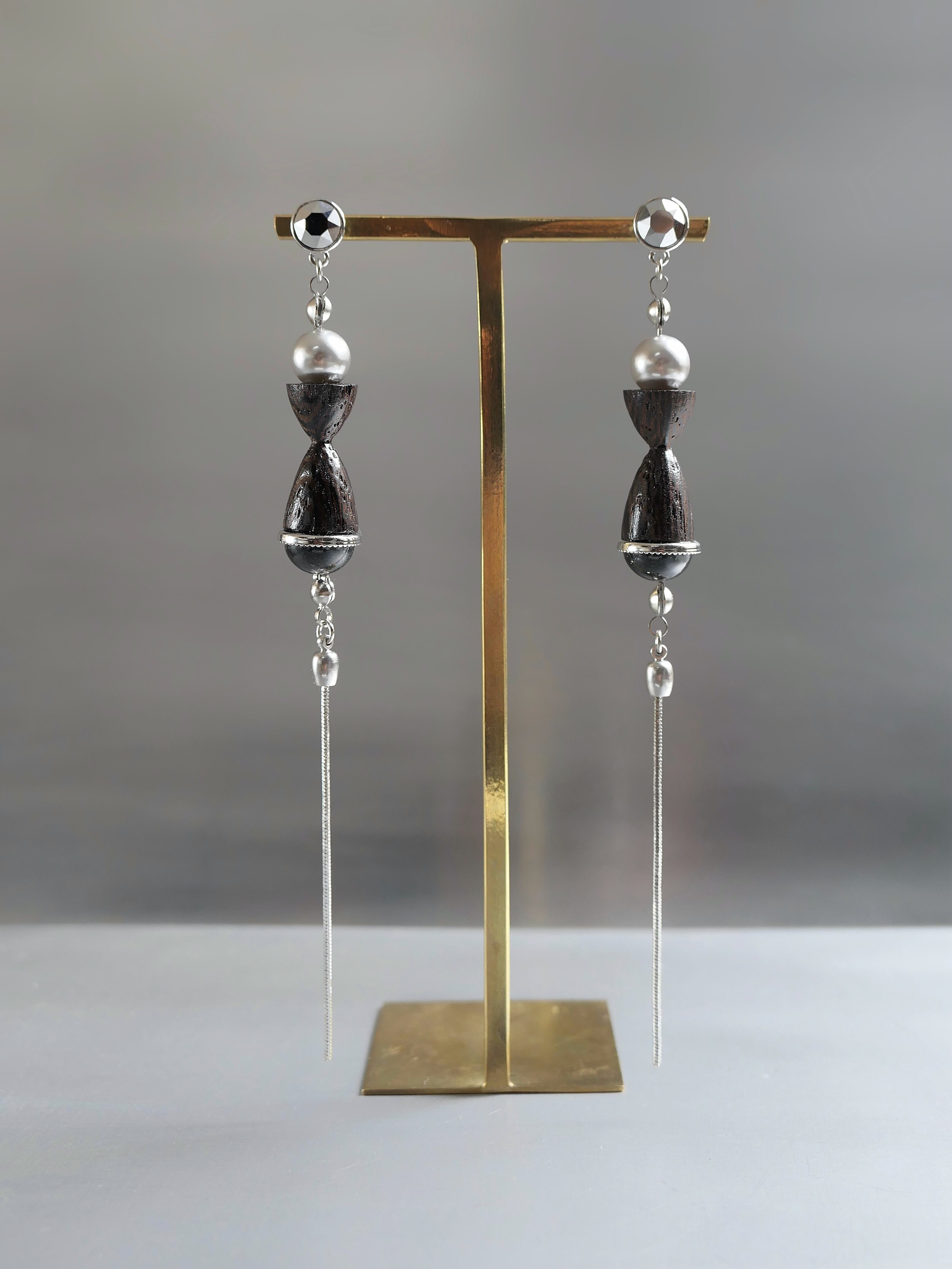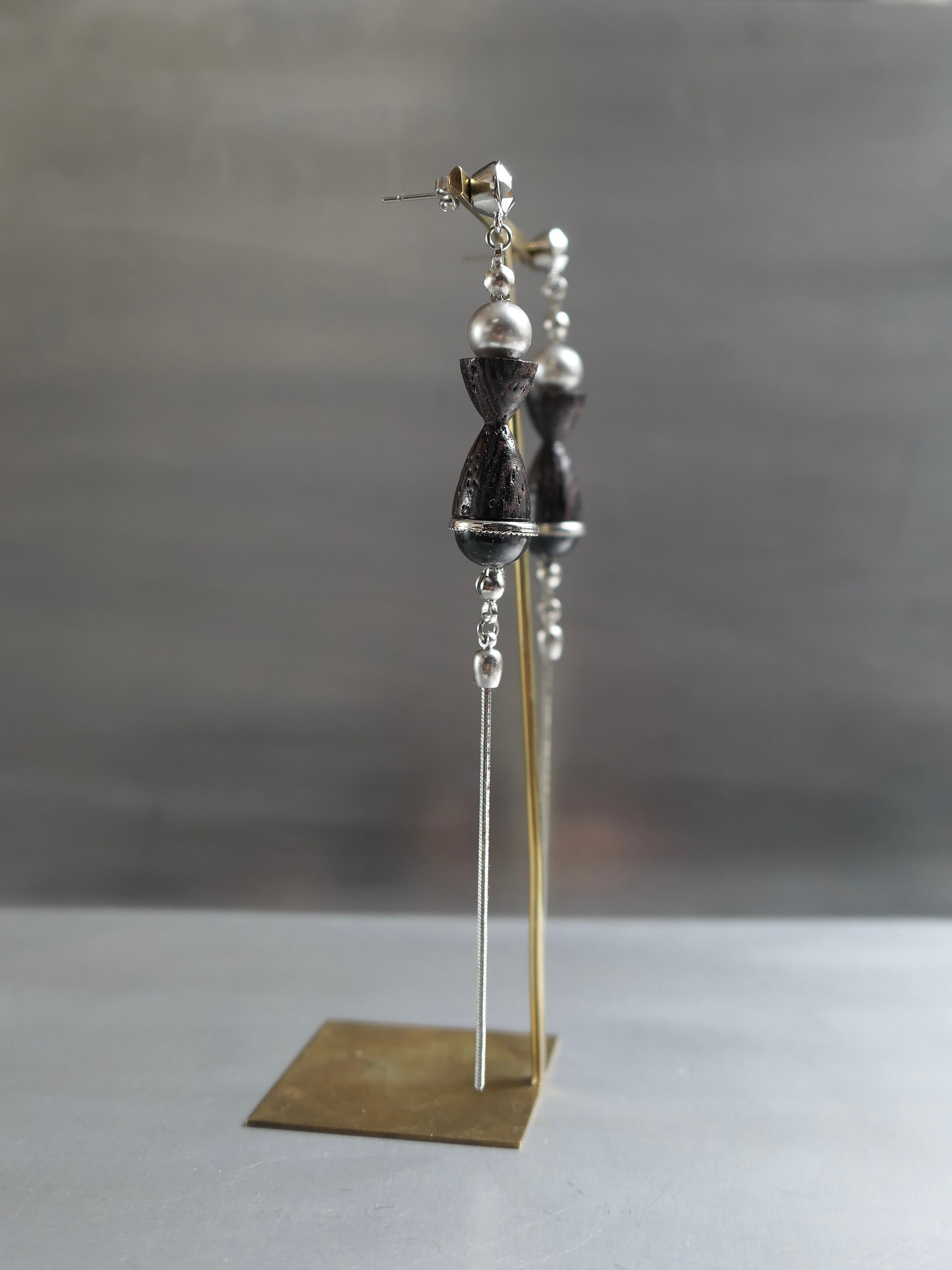 素材:木(ウエンジ)、硝子、樹脂、天然石(磁鉄鉱砂)、真鍮