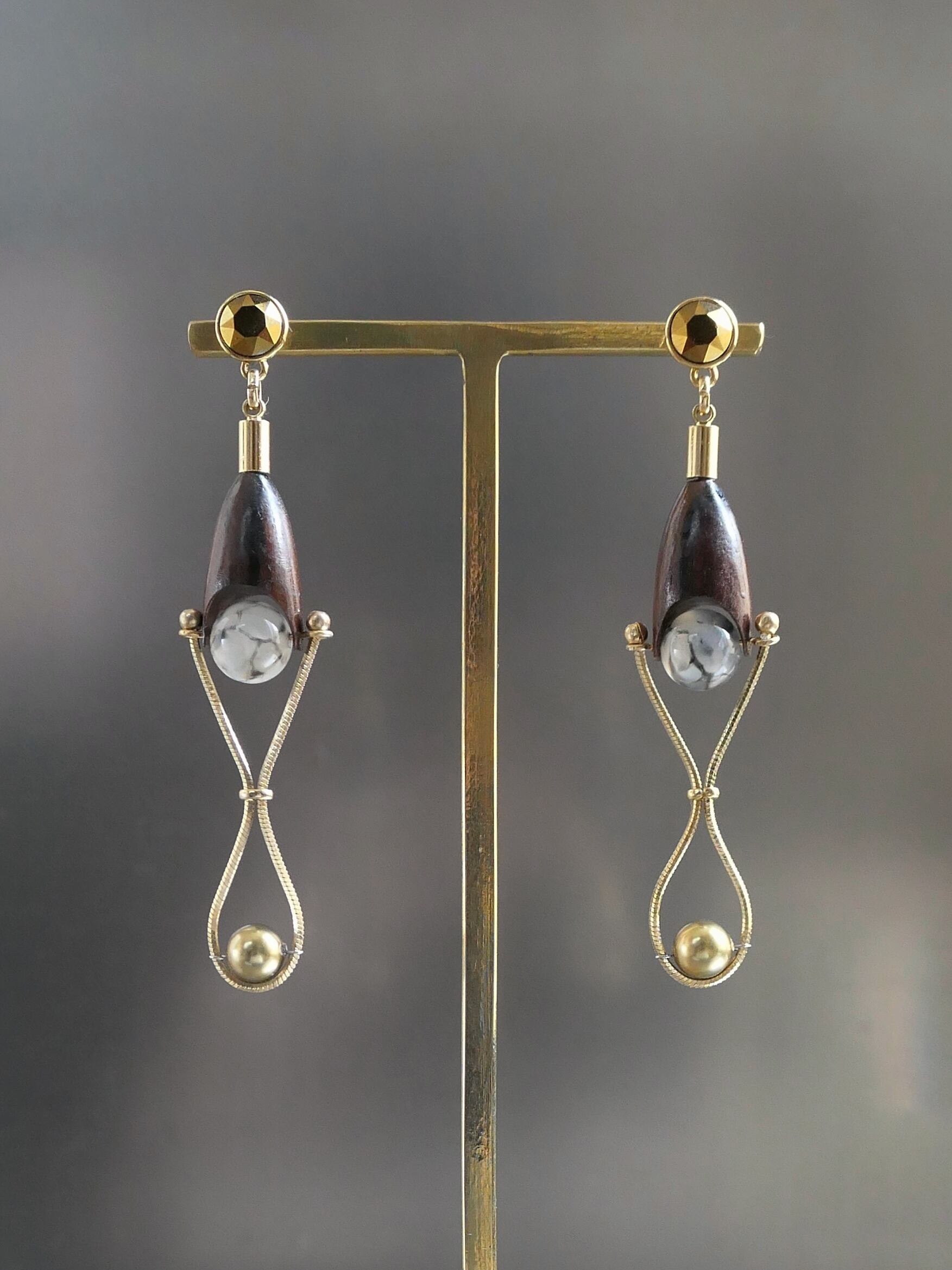 木や天然石、硝子など異素材を組み合わせたコンパクトな揺れるイヤーアクセサリーです。デイリーからフォーマルまでシーンを選ばず使いやすいデザインです。