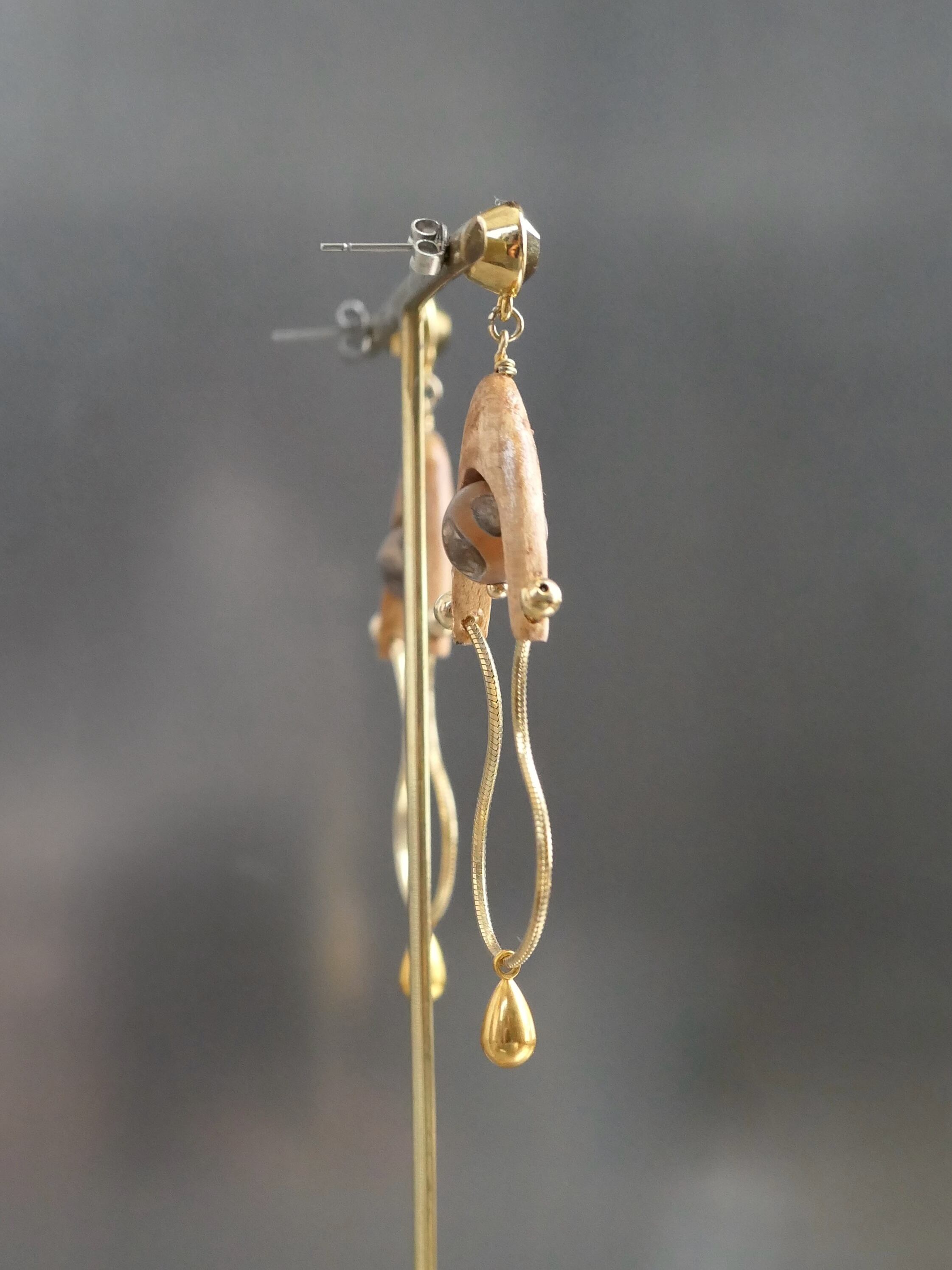 木のアーチから伸びるチェーンのピアスです。とても軽く、何も付けていない様な付け心地です。
